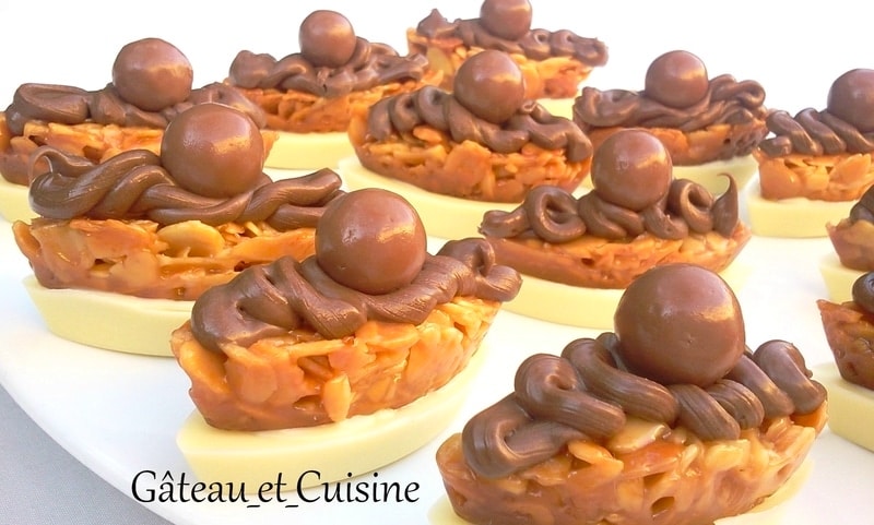 - Mettre dans une poche et décorer vos florentins. Poser sur chaque mignardise une boule maltesers.
