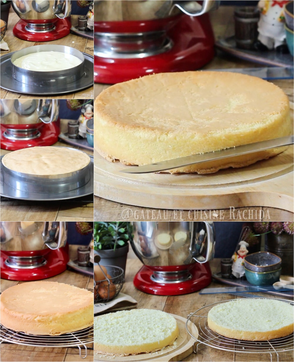- Génoise : Contrairement à ma précédente recette ,dans laquelle j’utilise une génoise sur plaque , ici j’utilise une génoise que je coupe en deux. J’ai voulu un fraisier généreux avec un bon équilibre entre les couches de génoise et de crème.