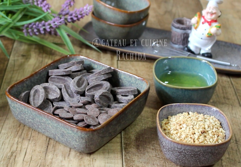 - 65 g d’éclats de noisettes amandes( torréfiées 15 min à 160 degrés) pistache ou de pralin au choix